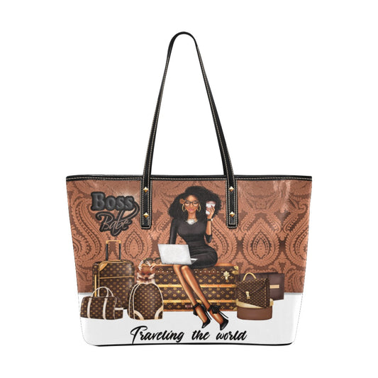 Traveling the World Boss Babe Chic Leather Tote Bag